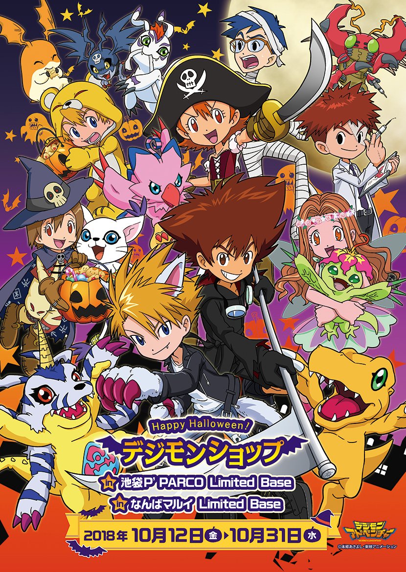 Foi anunciada uma nova temática temporária para as lojas da “Limited Base”, chamada “Happy Halloween! Digimon Shop” (Happy Halloween! デジモンショップ), que se localizará nas bases “Ikebukuro P’PARCO” e “Namba Marui (Osaka)”. Acontecerá entre os dias 12 e 31 de outubro.